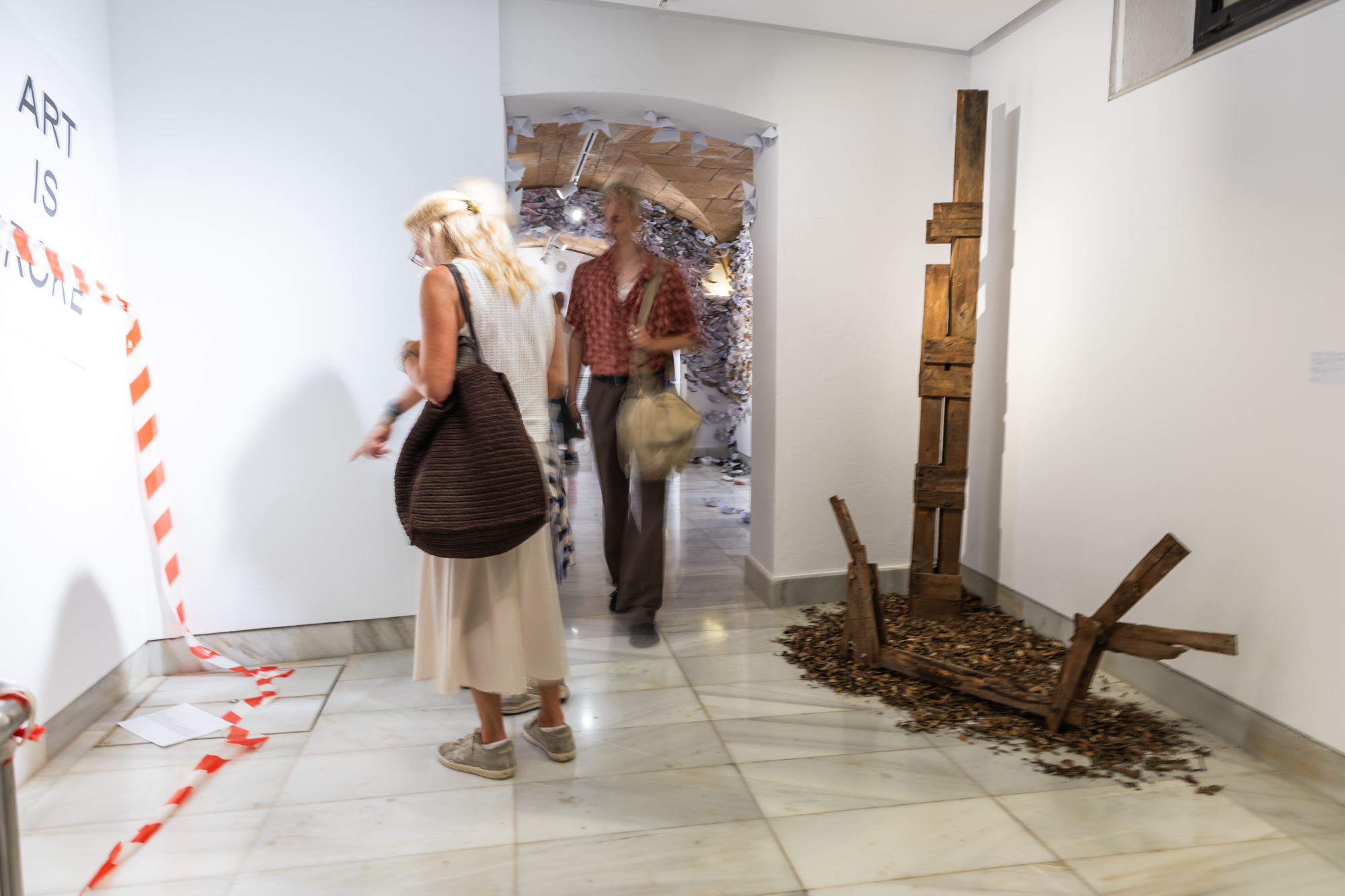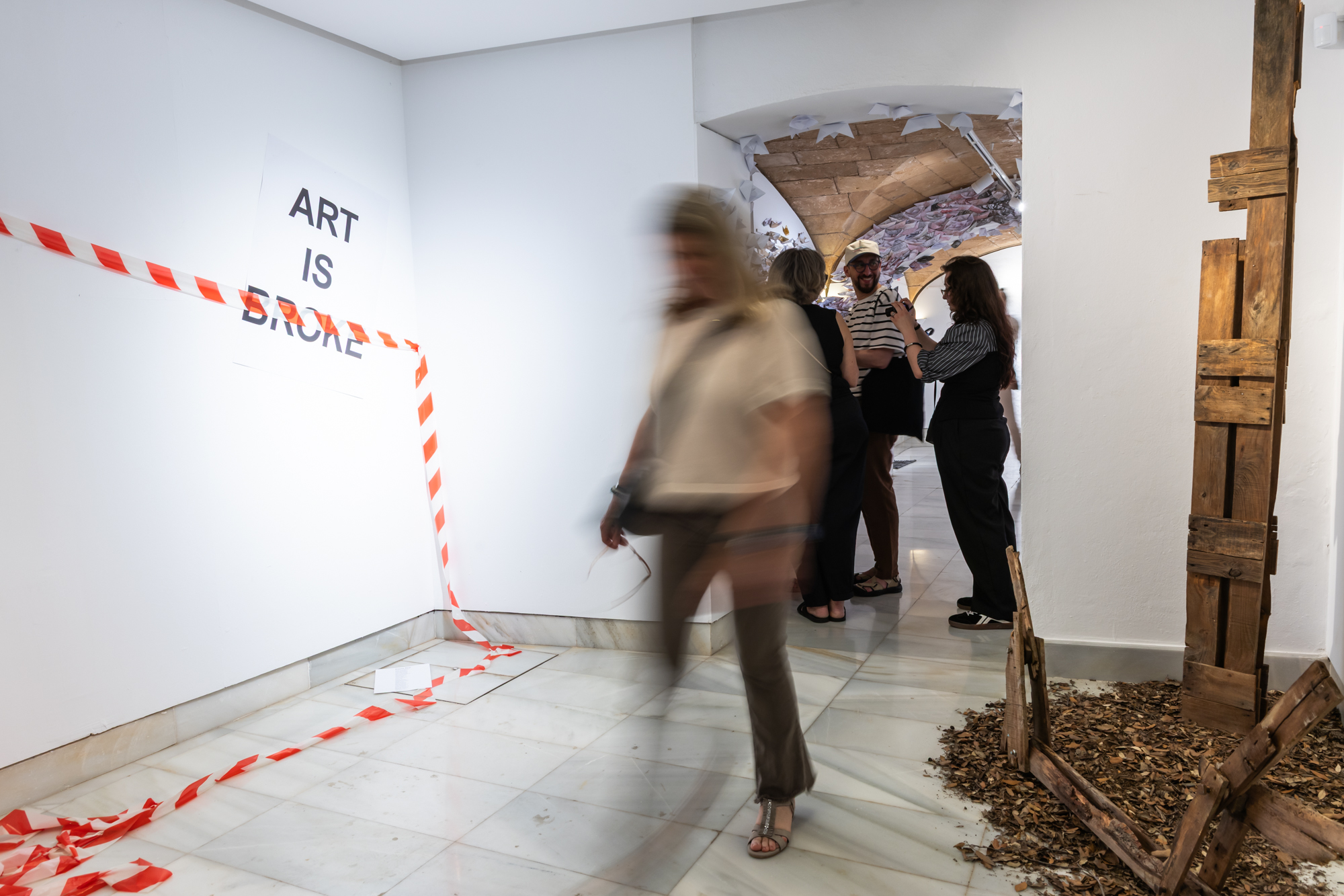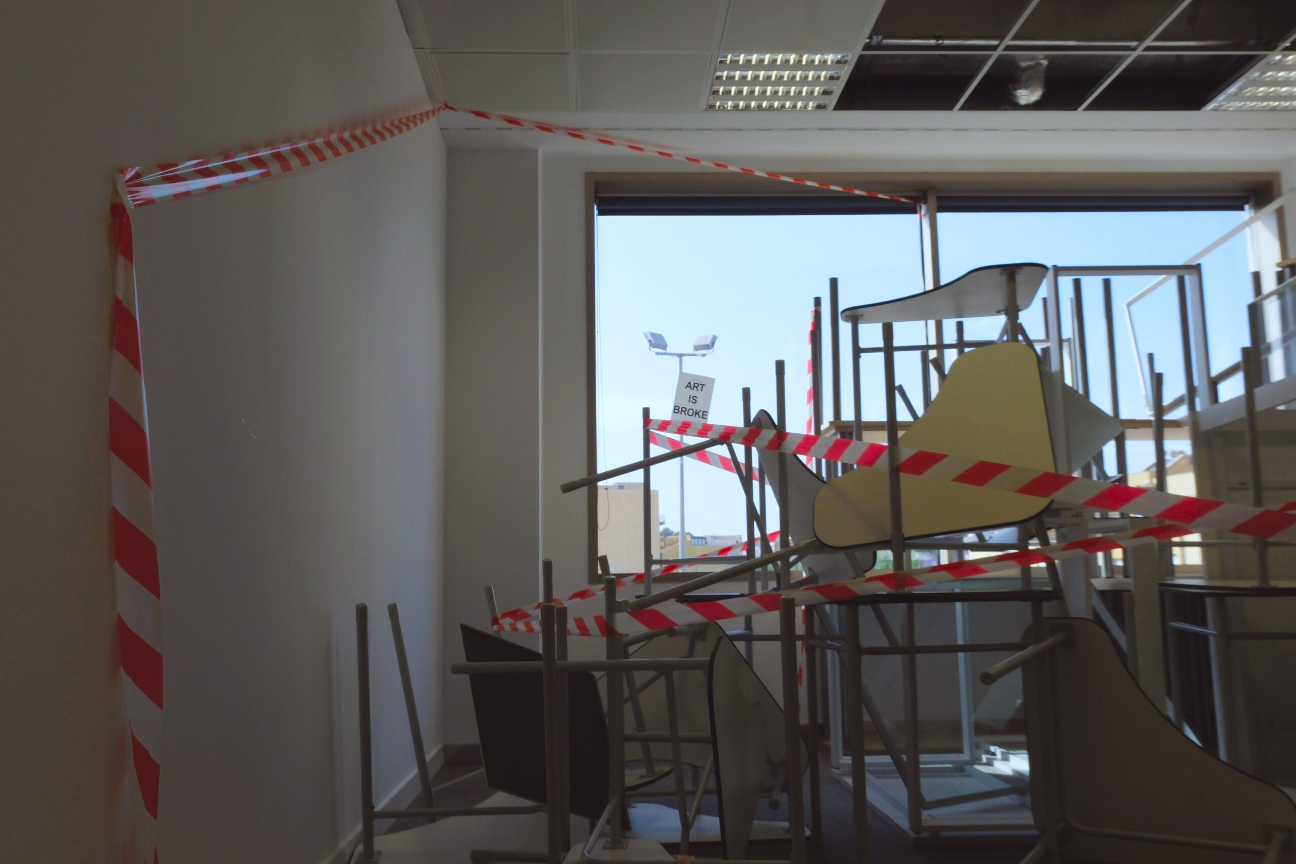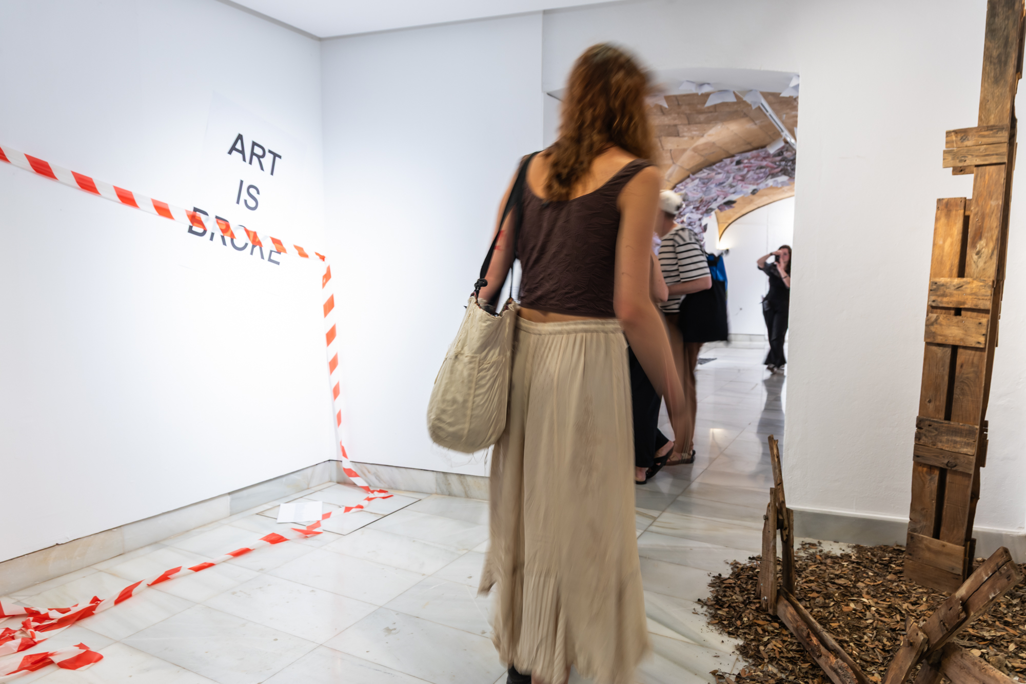 Die Klasse Sery der HfBK Dresden freute sich sehr über die Einladung zur Studentenbiennale auf Mallorca. Mitte April 2025 stürzten sich die Studierenden begeistert in die Vorbereitungen für die Biennale. Nach einigen Entscheidungen wurde jedoch klar, dass es nicht möglich war, schnell Finanzierungsmöglichkeiten für die Studierenden zu finden. Nach einiger Überlegung entwickelten die Studierenden gemeinsam eine Installation, die sich auf ihre persönliche Situation in diesem Moment bezieht und gleichzeitig zu einigen politischen Entwicklungen in Deutschland passt. Die extremen finanziellen Kürzungen im Kulturbereich in Dresden machen sich unter anderem in verkürzten Öffnungszeiten der Museen, der Einführung von Gebühren in Bibliotheken und Personaleinsparungen bei der Kinderbetreuung bemerkbar. Die Installation „Art is broke” macht auf diese Veränderungen aufmerksam.