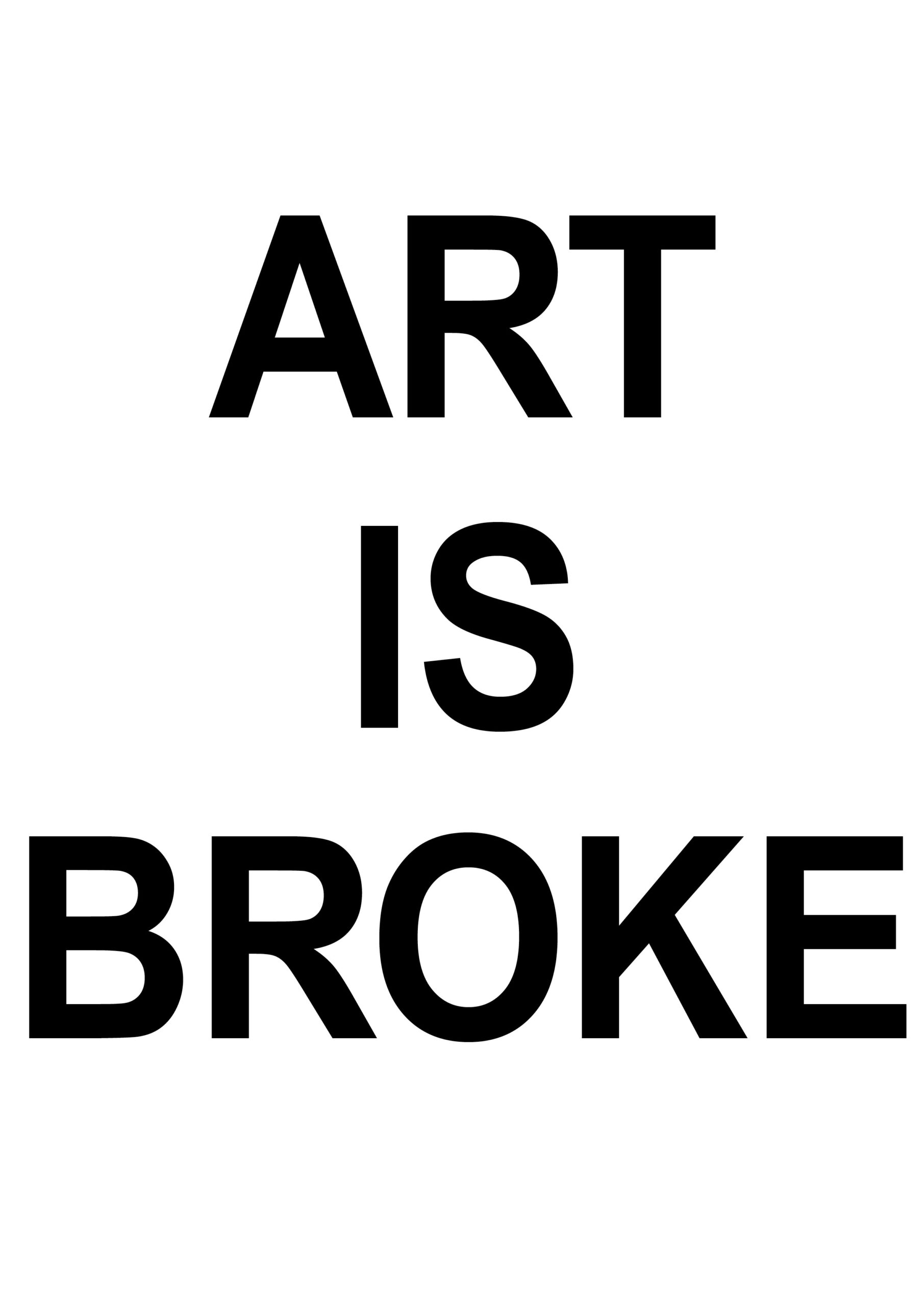 Die Typographie für den Text von der Installation „ART IS BROKE“ wurde von mir bearbeitet. Die Installation wurde als Beitrag der Klasse Sery der HfBK Dresden bei der University Biennial 2025 ausgestellt.